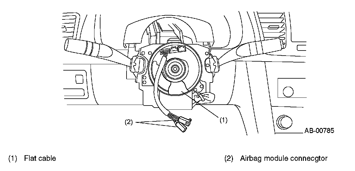 The flat cable maintains connection between the airbag module on the steering wheel and the airbag harness even when the steering wheel is turned. Ignition signal from the airbag control module is sent through the roll connector to the driver's seat airbag module.