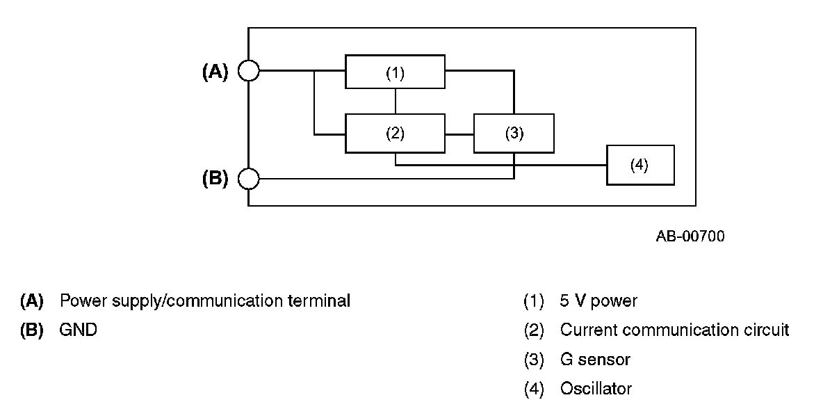 If it detects an impact exceeding the specified level from the front, it sends a signal which is used for airbag system deployment judgment to the airbag control module.