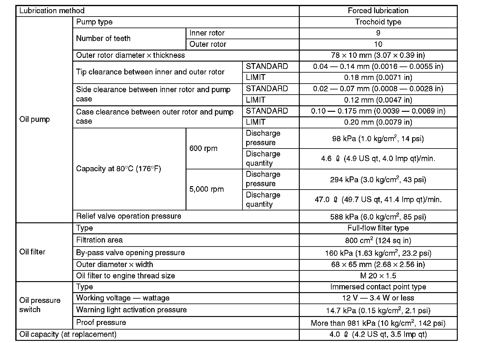 NOTE: If the vehicle is used in areas with very high temperatures or for other heavy duty applications, the following viscosity oils may be used: API classification: SL or SJ or SH SAE Viscosity No.: 30, 40, 10W-50, 20W-40, 20W-50.