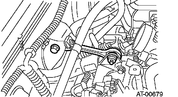 15. Remove the bolts which hold the right upper side of transmission to engine.