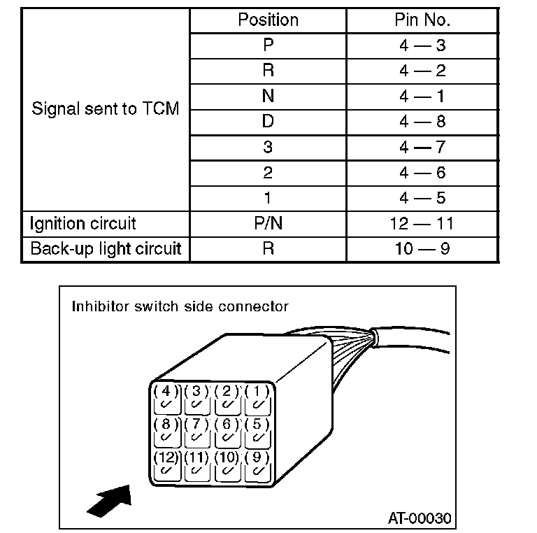 ^ If the inhibitor switch is inoperative, check for poor contact of connector on transmission side.
