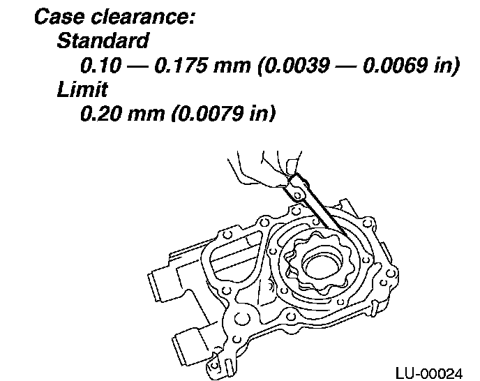 Measure the clearance between the outer rotor and the cylinder block rotor housing. If the clearance exceeds the limit, replace the oil pump case.