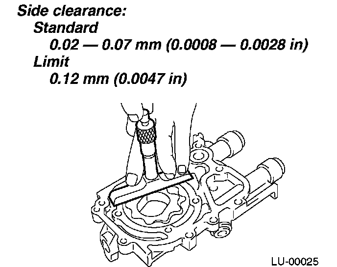 Measure clearance between oil pump inner rotor and pump cover. If the clearance exceeds the limit, replace rotor or oil pump case.