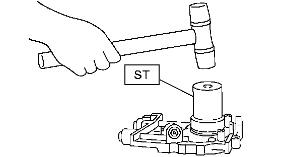 ^ When installing oil pump to cylinder block, do not damage oil seal.