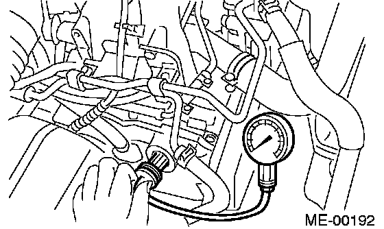 8. Crank the engine by means of the starter motor, and read the maximum value on the gauge when the pointer is steady.