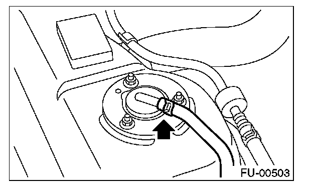 2. Move clip and disconnect evaporation hose from fuel cut valve.