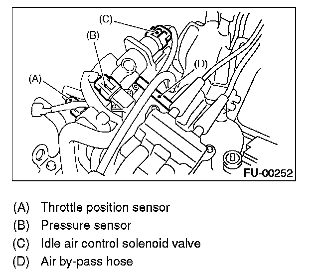 5. Disconnect connectors from idle air control solenoid valve, throttle position sensor and pressure sensor.