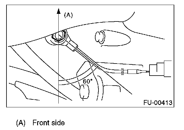 NOTE: The extraction area of the knock sensor cord must be positioned at a 60 degree angle relative to the engine rear.