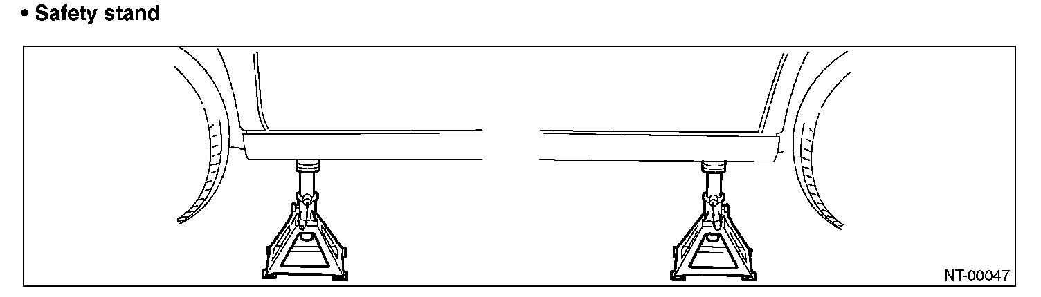 When using a lift or jack-ridged rack to raise a vehicle, always follow instructions concerning jack-up points and weight limits to prevent the vehicle from falling, which could result in injury. Be especially careful to make sure the vehicle is balanced before raising it.