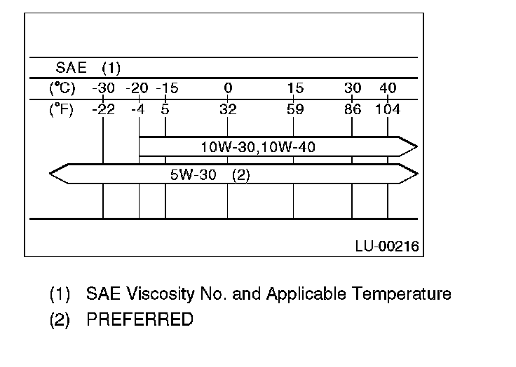 NOTE: If vehicle is used in desert areas with very high temperatures or for other heavy duty applications, the following viscosity oils may be used: ILSAC classification: GF-3 or API classification: SL SAP Viscosity No.: 30, 40, 10W-50, 20W-40, 20W50.