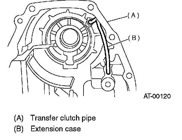 3. Install the transfer clutch pipe to extension case without bending pipe.