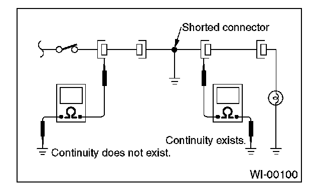 Disconnect all affected connectors, and check the continuity between each connector and ground. When the ohmmeter indicates continuity between a particular connector and ground, that the connector is shorted.