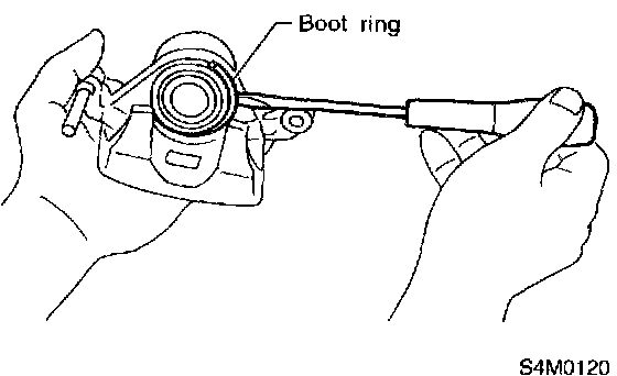 6) Install the piston boot to caliper body, and attach boot ring.