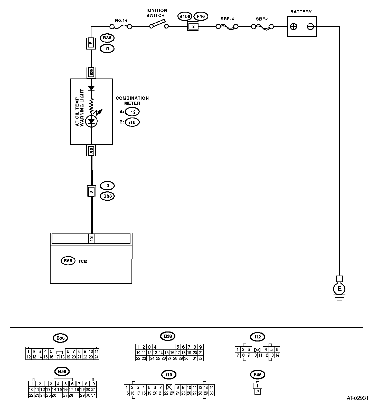 DIAGNOSIS: The AT OIL TEMP warning light circuit is open or shorted.