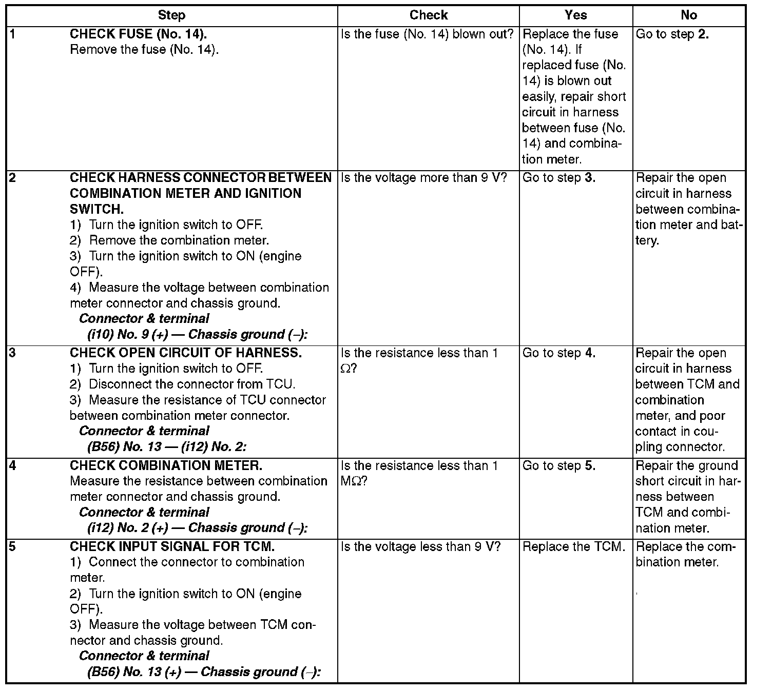 TROUBLE SYMPTOM: When the ignition switch is turned to ON (engine OFF), AT OIL TEMP warning light does not illuminate normally.