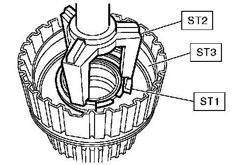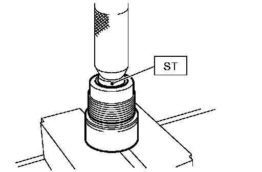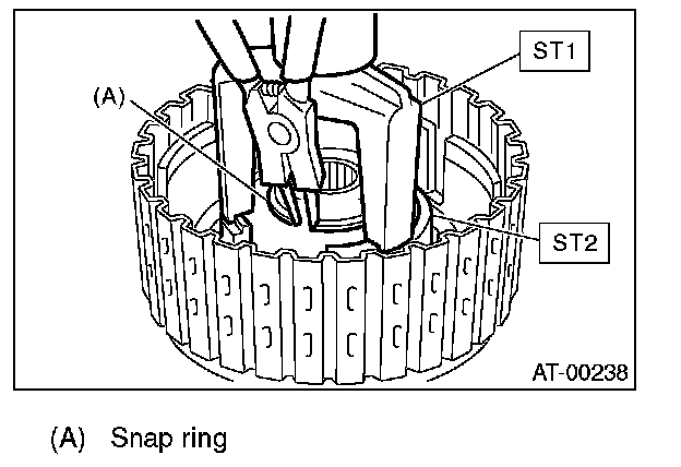 7. Install the snap ring using ST1 and ST2.
