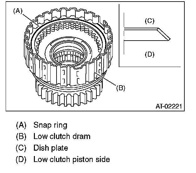 18. Install the snap ring to low clutch drum.