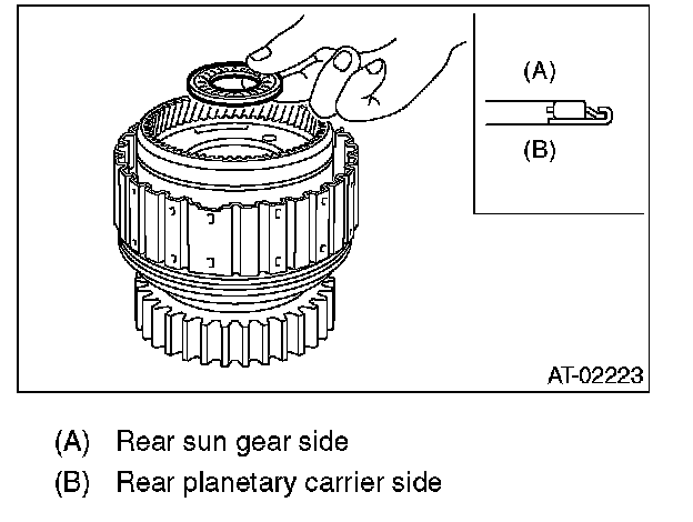Measure the clearance B between the retaining plate and the snap ring, and select the retaining plate so that the clearance is within the standard value. At this time, do not push down the retaining plate.