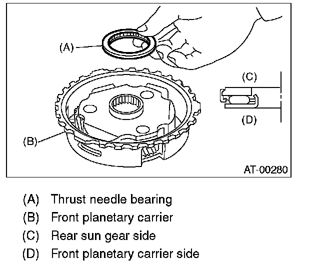 14. Install the thrust needle bearing in correct direction.