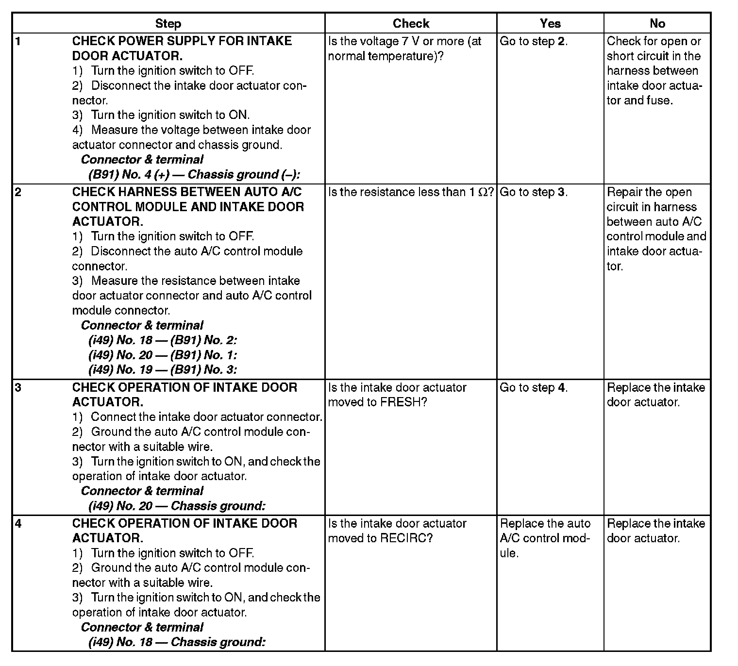 Diagnostic Procedure for ActuatorsINTAKE DOOR ACTUATOR