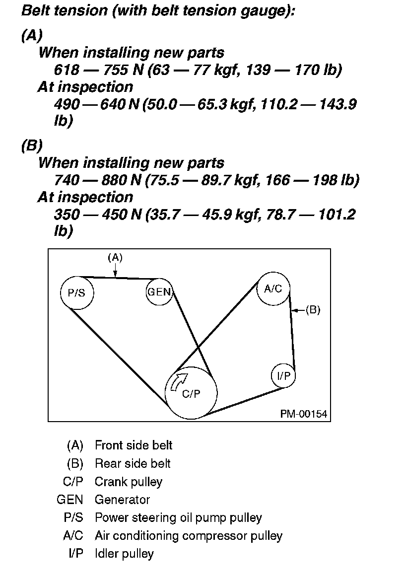 Belt tension (with belt tension gauge):