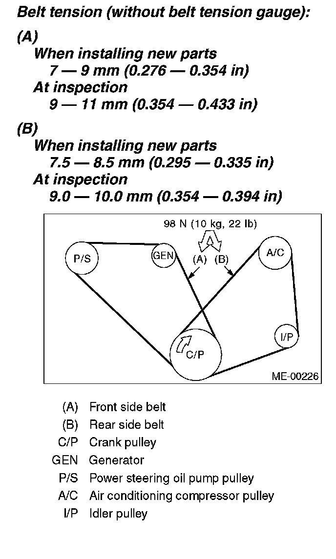 Belt tension (without belt tension gauge):