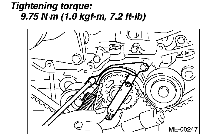 Tightening torque: 9.75 Nm (1.0 kgf-m, 7.2 ft. lbs.)