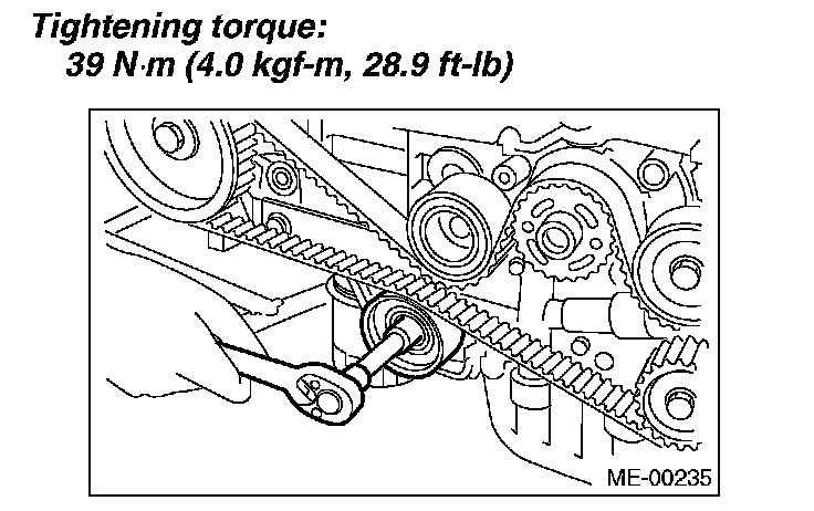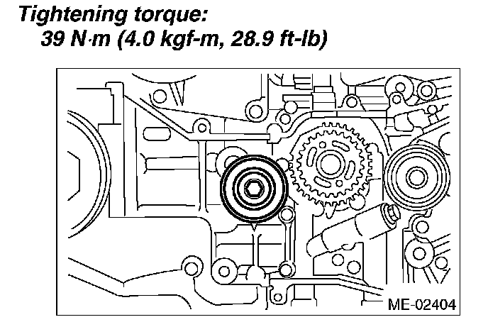Tightening torque: 39 Nm (4.0 kgf-m, 28.9 ft. lbs.)