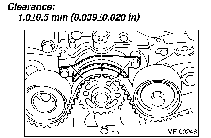 (2) Check and adjust the clearance between timing belt and timing belt guide by using thickness gauge.