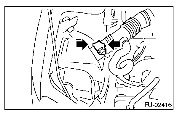 2. Disconnect the connector from mass air flow and intake air temperature sensor.