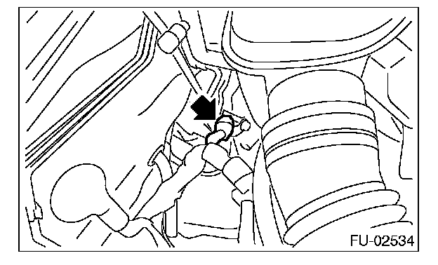 2. Remove the clip holding harness, and then disconnect the connector of rear oxygen sensor.
