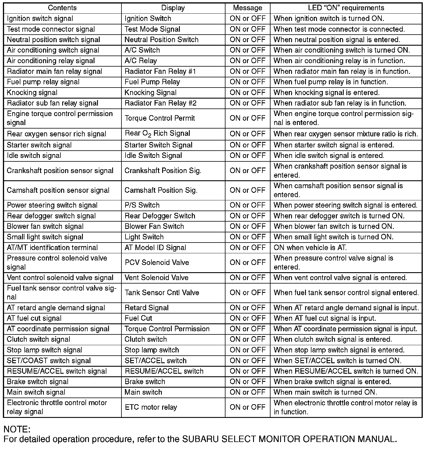 NOTE: For detailed operation procedure, refer to the SUBARU SELECT MONITOR OPERATION MANUAL.