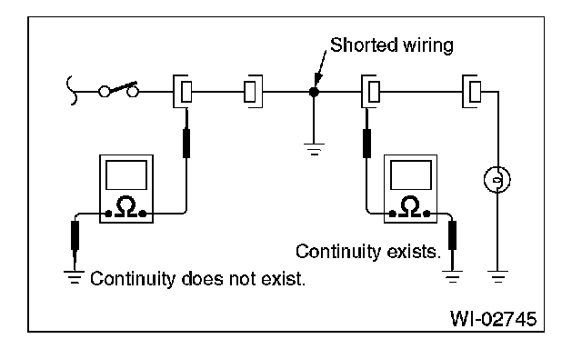 Disconnect all affected connectors, and check the continuity between each connector and ground. When the ohmmeter indicates continuity between a particular connector and ground, that the connector is shorted.