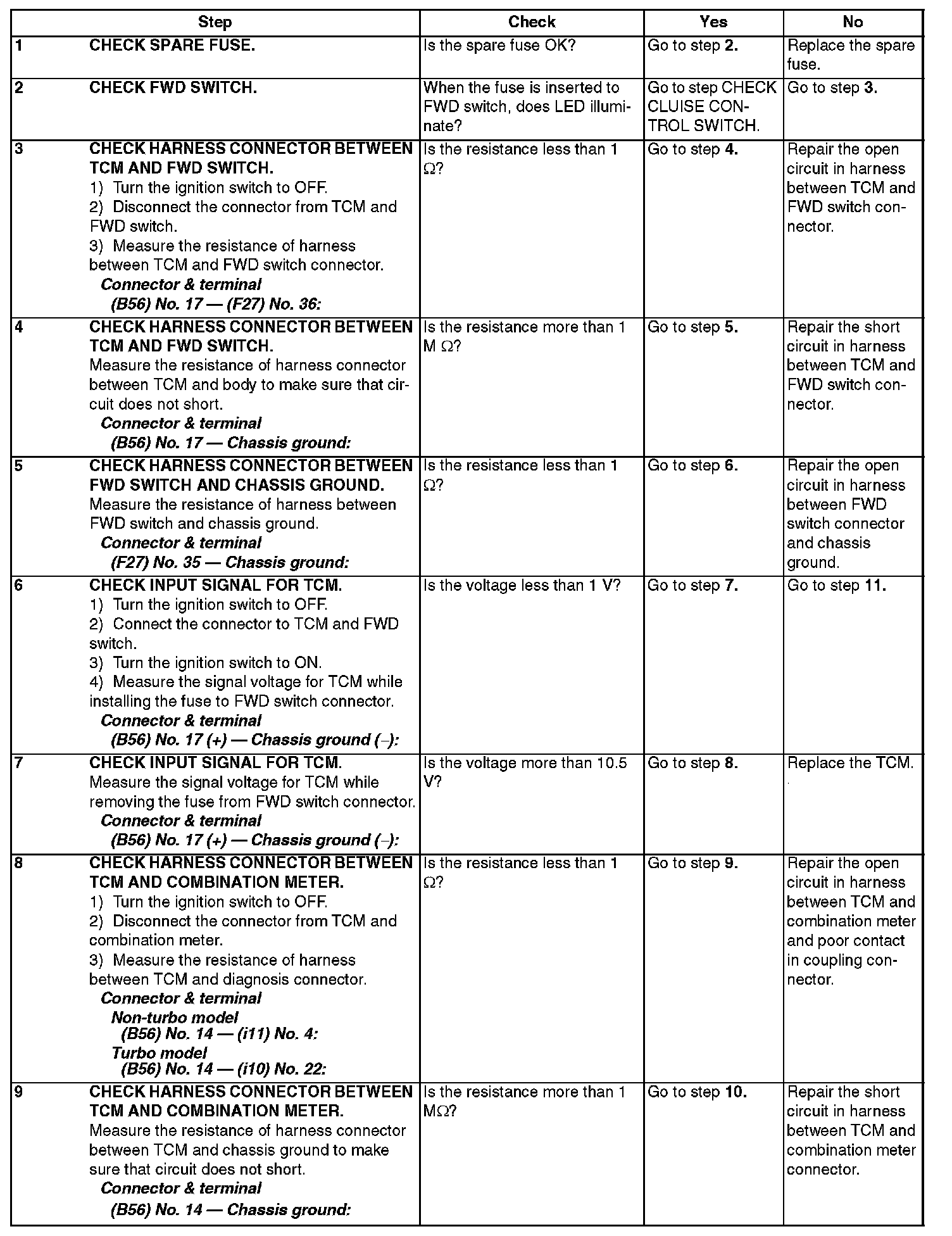 CHECK FWD SWITCH.