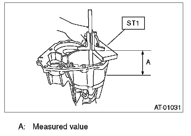 2. Using the special tool, measure distance "A" from extension case joining surface to multi-plate clutch (LSD) piston.