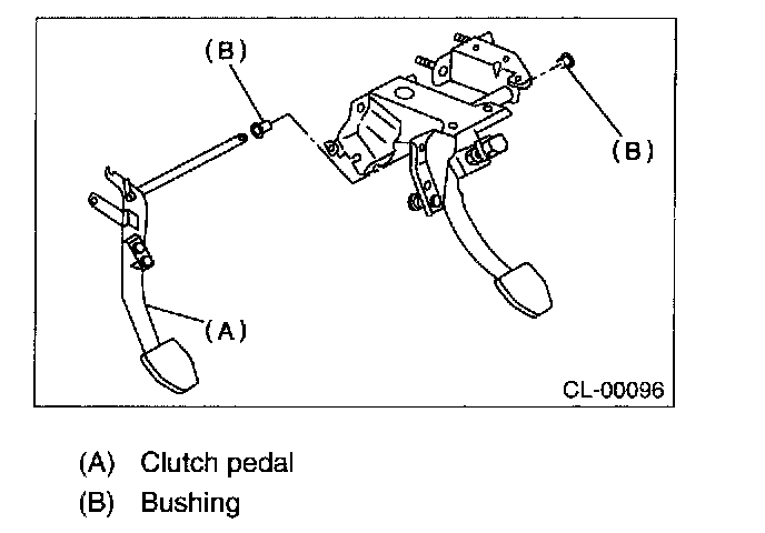 2. Clean inside of bores of clutch pedal and brake pedal, apply grease, and set bushings into bores.