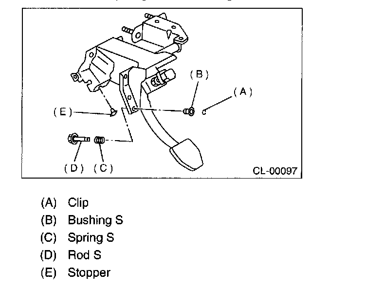 2. Ensure that the clutch pedal contacts clutch pedal bracket stopper, when fully depressing the clutch pedal.