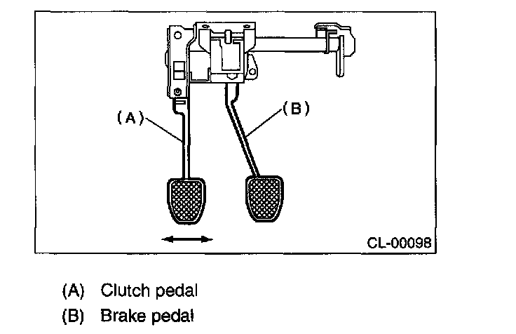 Move the clutch pedal pads in the lateral direction with a force of approximately 10 N (1 kgf, 2 lb) to ensure pedal deflection is in specified range.