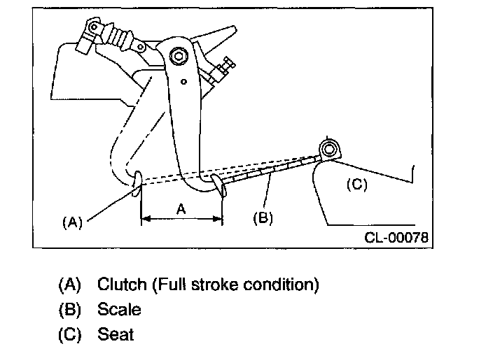 ^ Measure the length between seat cushion front end and center portion of clutch pedal.