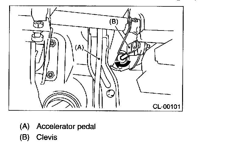 6. Turn the push rod counter clockwise to lengthen until clutch pedal contacts to stopper bolt.