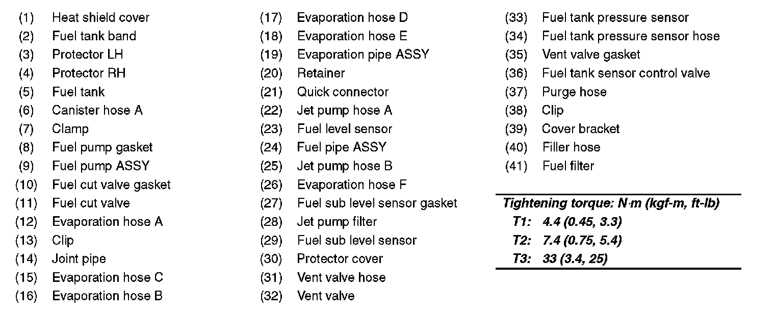 NOTE: The fuel pump assembly consists of a fuel pump and a fuel level sensor.