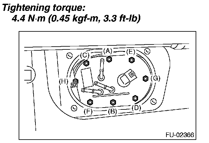 11. Remove the nuts which install the fuel pump assembly onto the fuel tank.