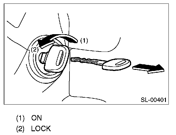 2. Turn the ignition switch from ON to LOCK, and remove the key from ignition switch.