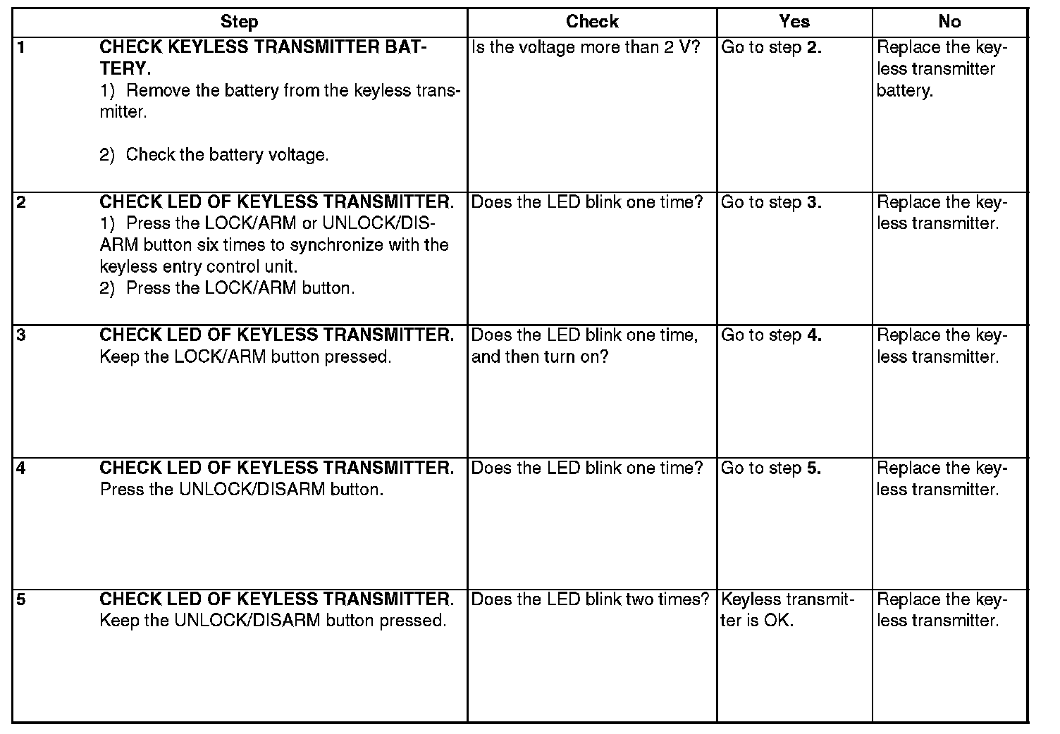 Check Keyless Transmitter Battery and Function