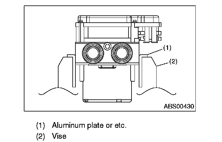 3) Set the pump motor part of removed ABSCM&H/U faces down in the vise.