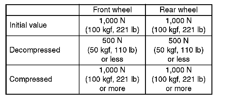 7) Read values indicated on the brake tester and check if the fluctuation of values, while decompressed and compressed, meet the standard values.