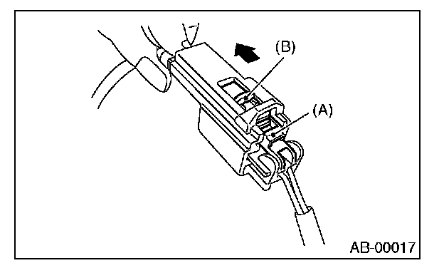 2. Disconnect the connector with slide lock (A) moved.