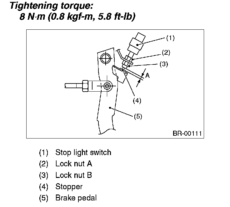 Stop light switch clearance A: 0.3 mm (0.012 inch)
