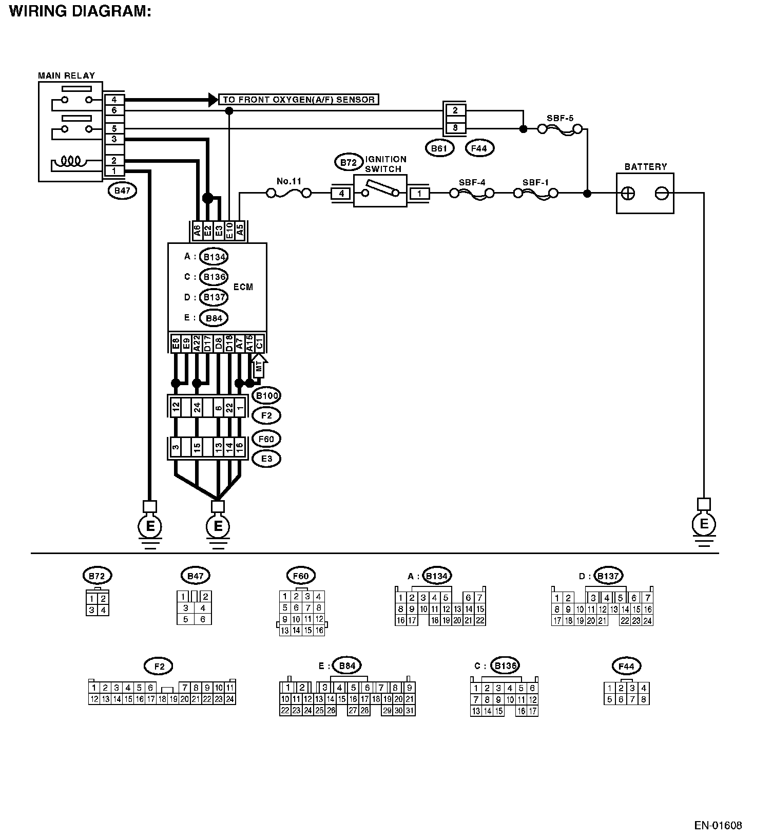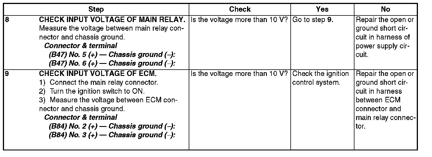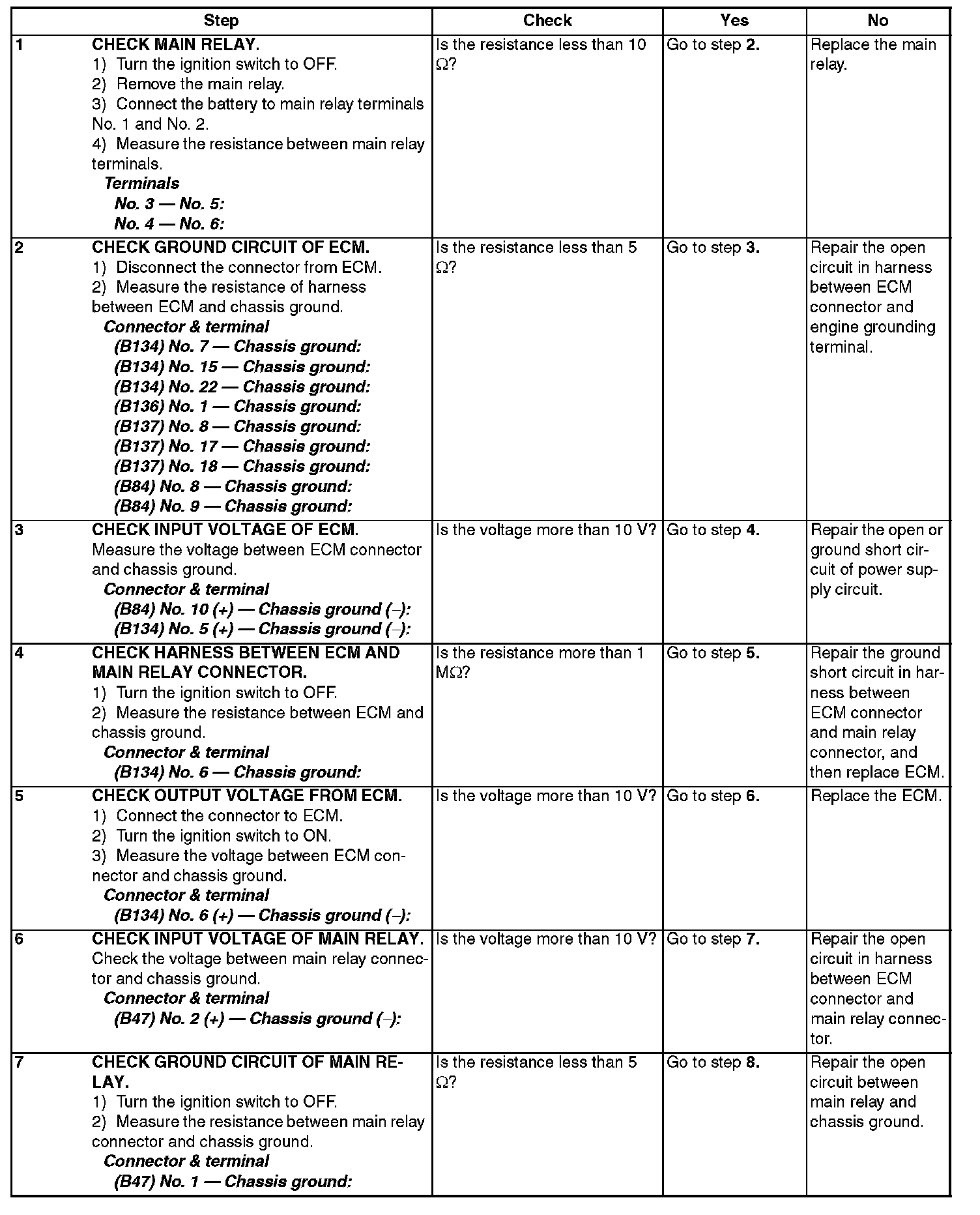 CHECK POWER SUPPLY AND GROUND LINE OF ENGINE CONTROL MODULE (ECM)CAUTION: After repair or replacement of faulty parts, conduct Clear Memory Mode and Inspection Mode.