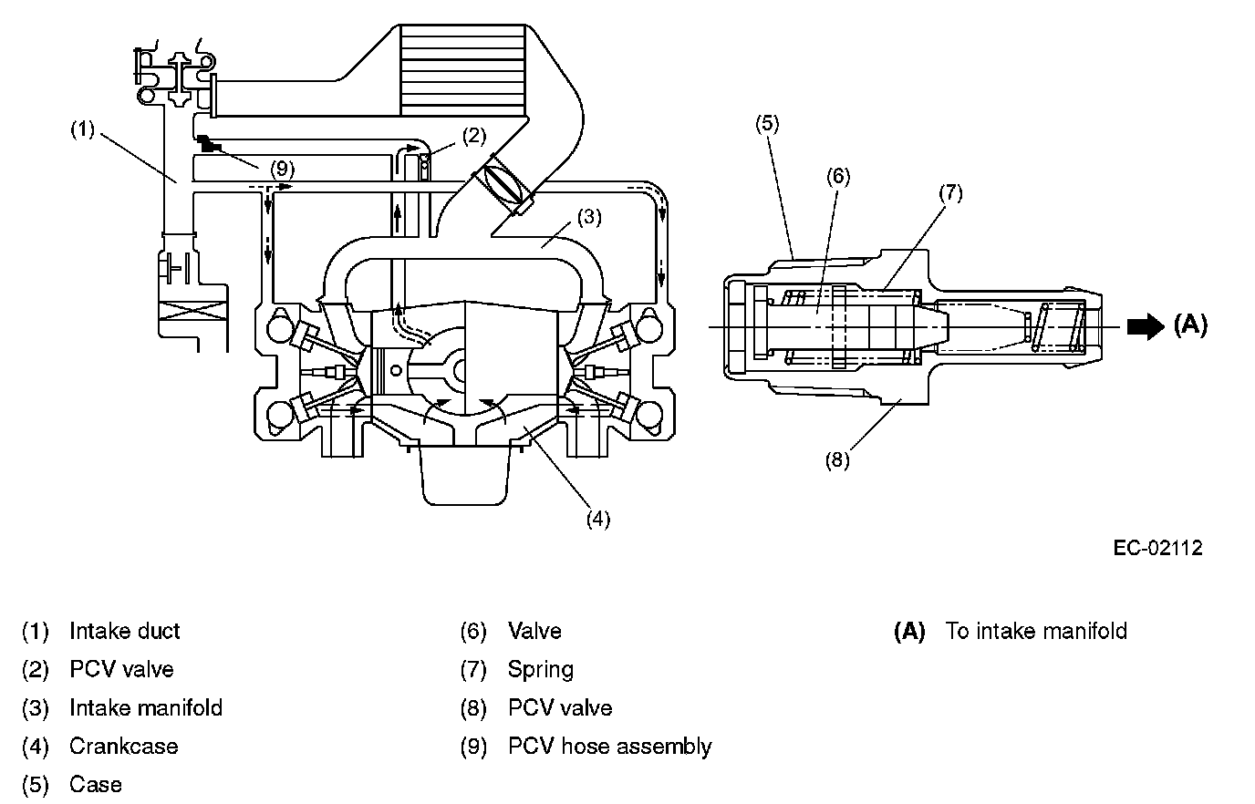 Crankcase Emission Control System- The positive crankcase ventilation (PCV) system prevents air pollution that will be caused by blow-by gas being emitted from the crankcase.